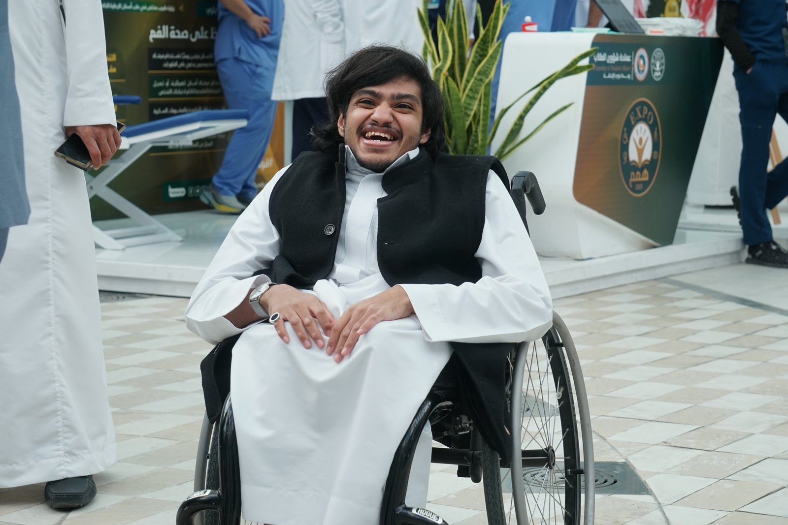في يوم مميز شهدته جامعة الملك فيصل، انطلقت النسخة الثالثة من معرض "إكسبو همم" بتاريخ 9 ديسمبر، على أن تتواصل فعالياته وأنشطتها المتنوعة في اليوم التالي 10 ديسمبر، في يومين يُعدّان استثنائيين بما يحملانه من مشاركة واسعة ومحتوى معرفي ثري يقدّم تجربة متكاملة لزوّار المعرض. وقد شهد اليوم الأول مشاركة ما يقارب 30 بوثاً لعدد من الجهات والمراكز المتخصصة، أبرزها جهات تعليمية وصحية وتأهيلية، إضافةً إلى جمعيات ومؤسسات مهتمة بتمكين أصحاب الهمم ورعايتهم. وشهدت الفعالية حضور معالي رئيس الجامعة أ.د. عادل بن محمد أبو زنادة، والذي تم استقباله بأوبريت ترحيبي قدمته طالبات مدارس الرواد الأهلية في مبادرة جسدت روح الشراكة المجتمعية ودعم الجهود المبذولة لتمكين أصحاب الهمم. وأعقب الاستقبال جولة تعريفية قام خلالها معاليه على البوثات المشاركة، حيث التقى ممثلي الجهات الطلابية والجامعية والجمعيات المختلفة، واطّلع على المبادرات المقدمة، مشيداً بما تضمنته الأركان من محتوى معرفي وتوعوي يسهم في تعزيز الوعي وتمكين ذوي الإعاقة داخل المجتمع الجامعي.